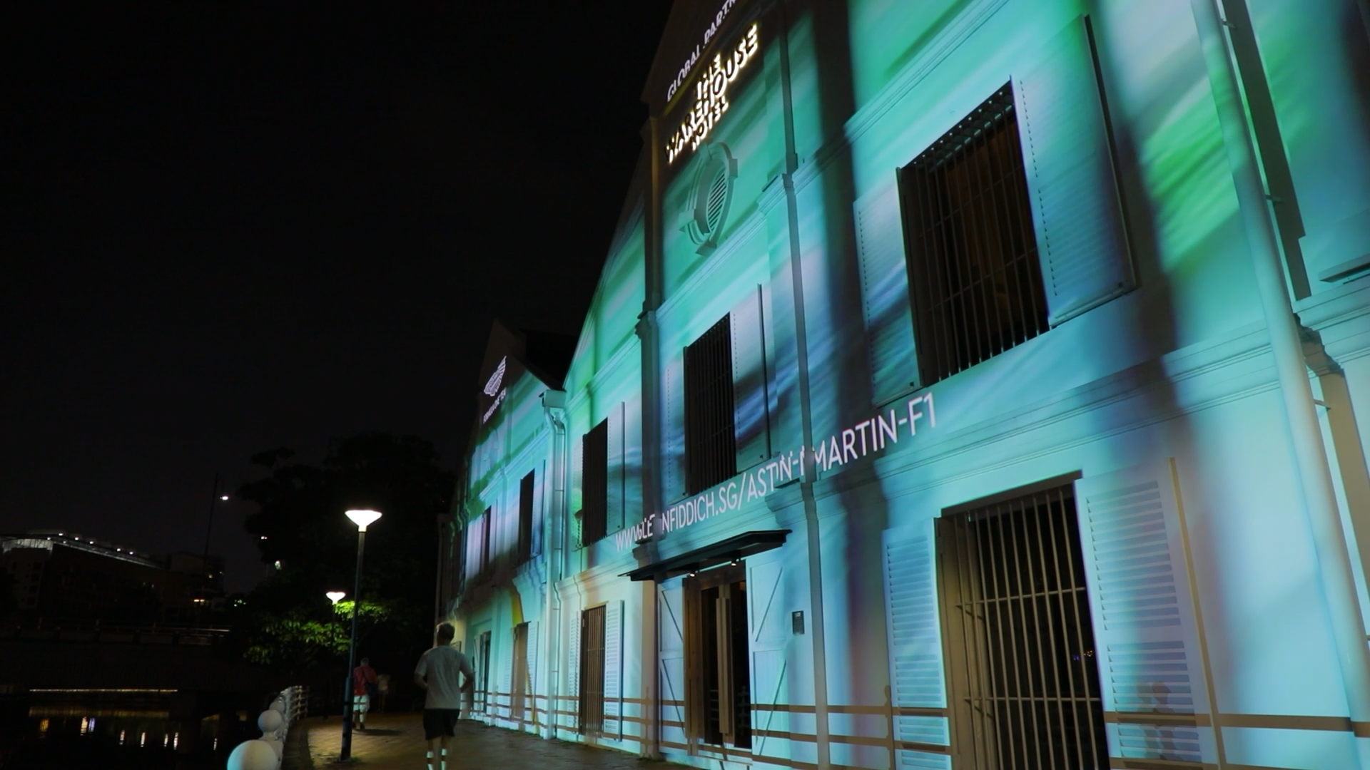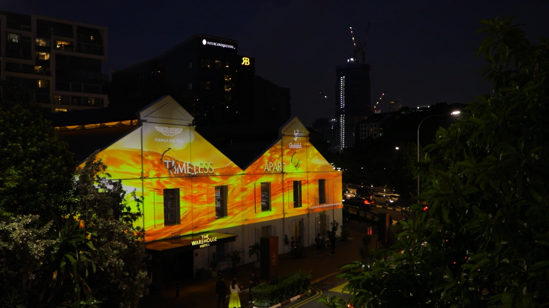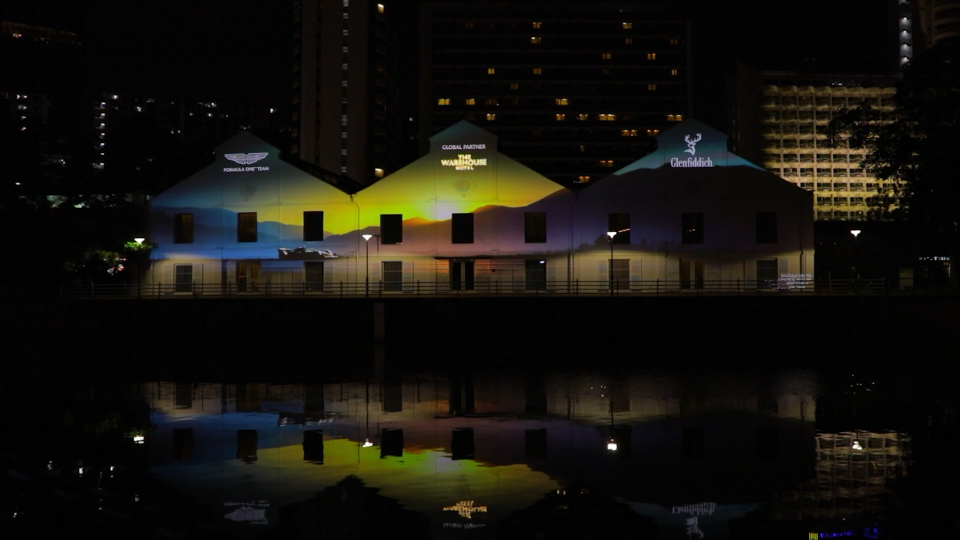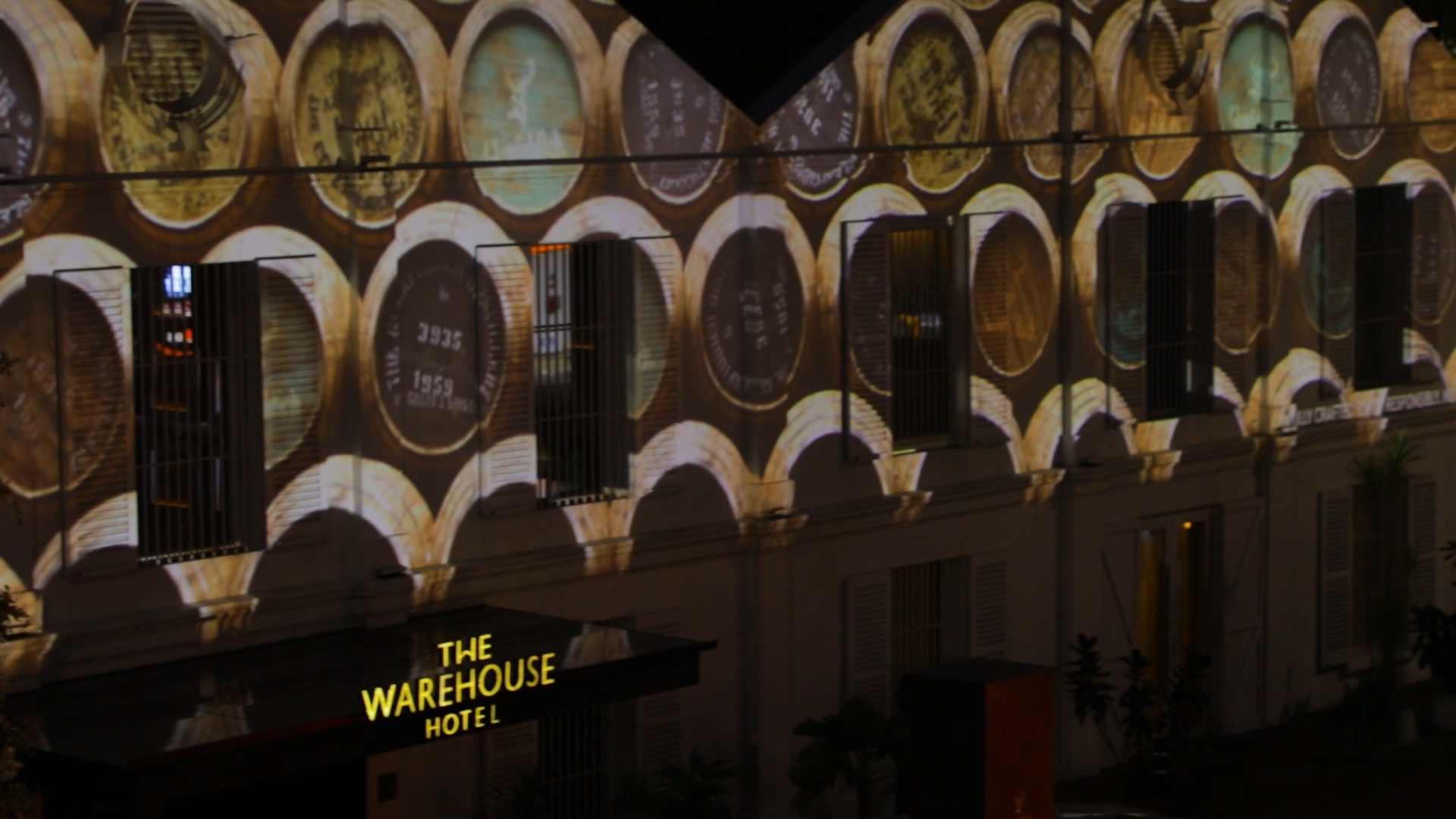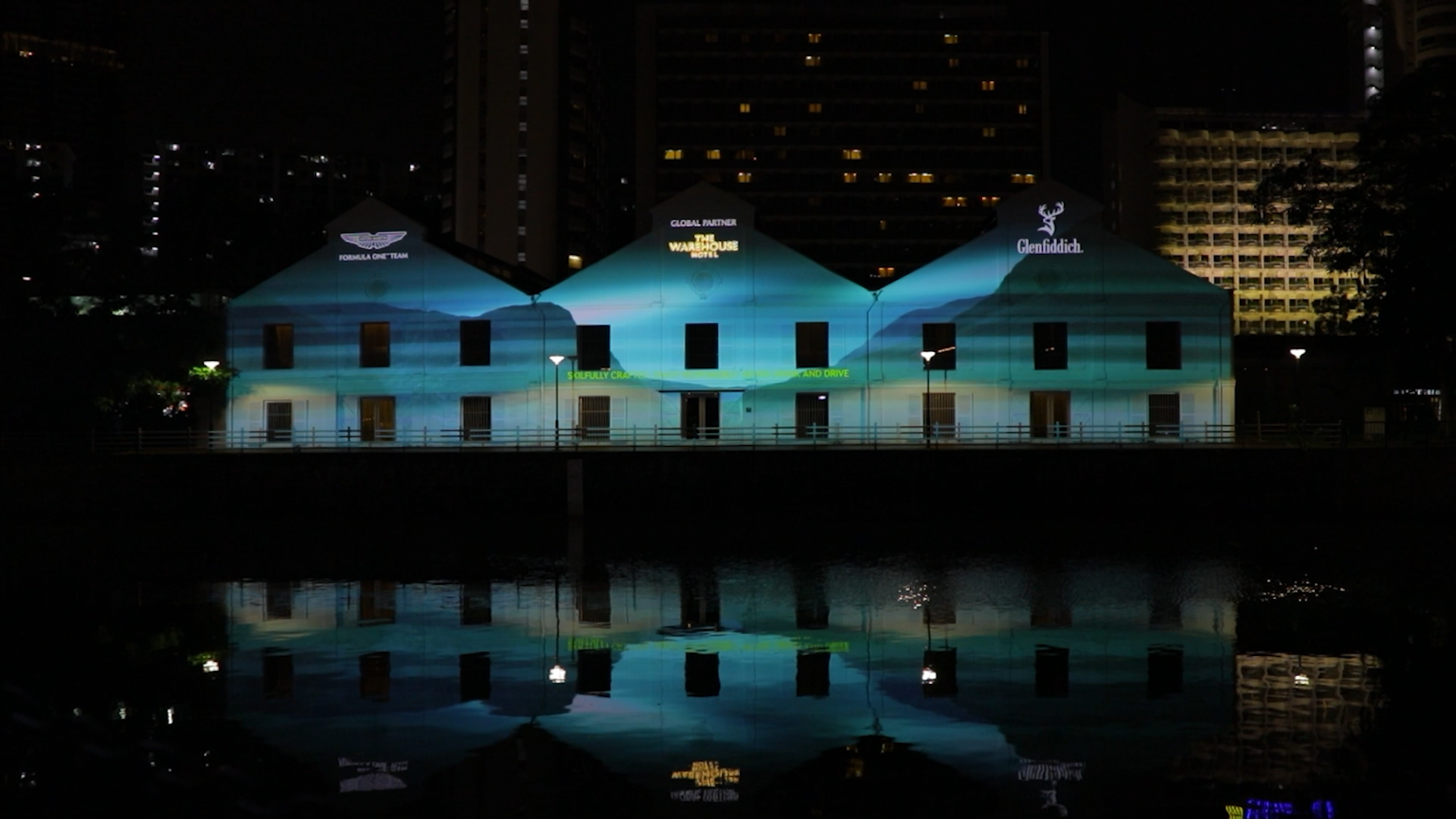 A animated projection onto the façade of The Warehouse Hotel in Singapore to celebrate Glenfiddich as a sponsor